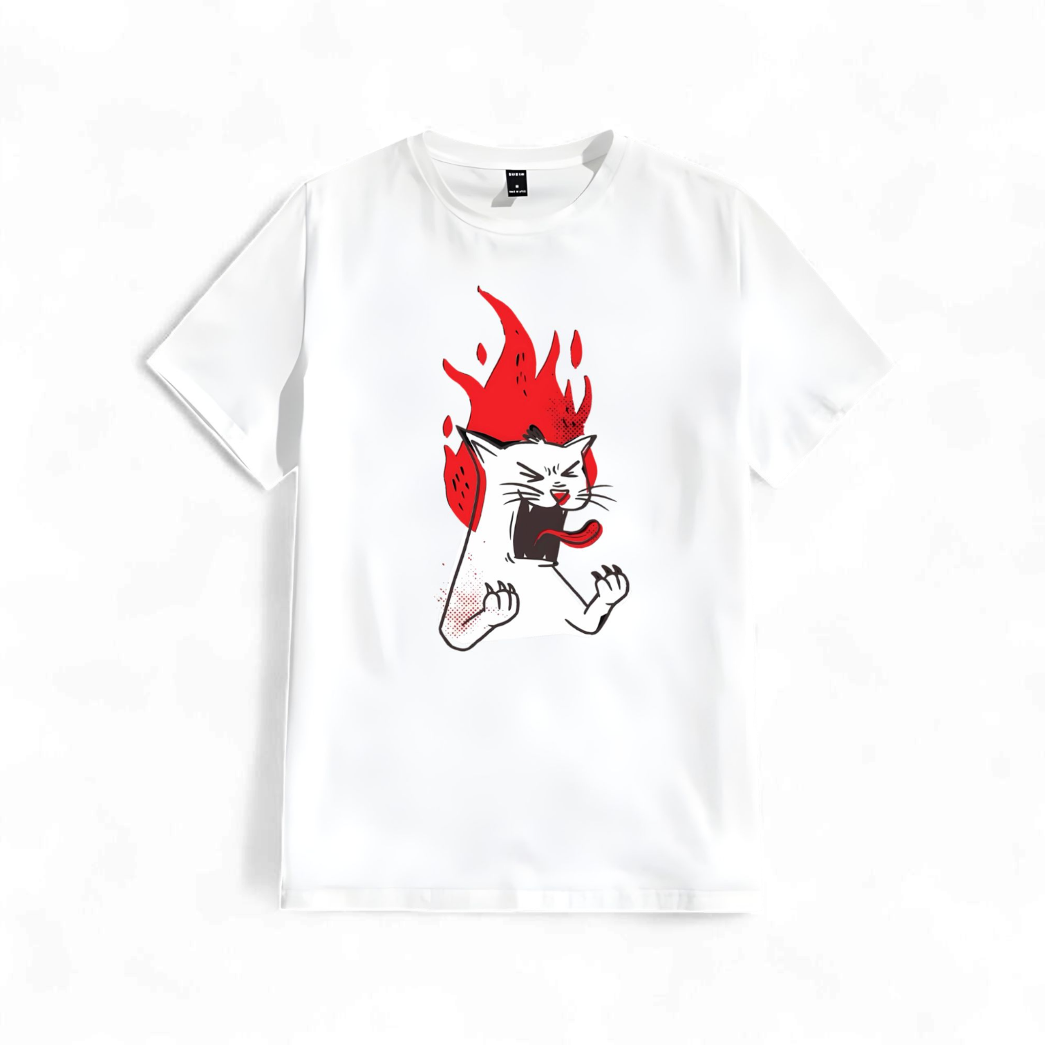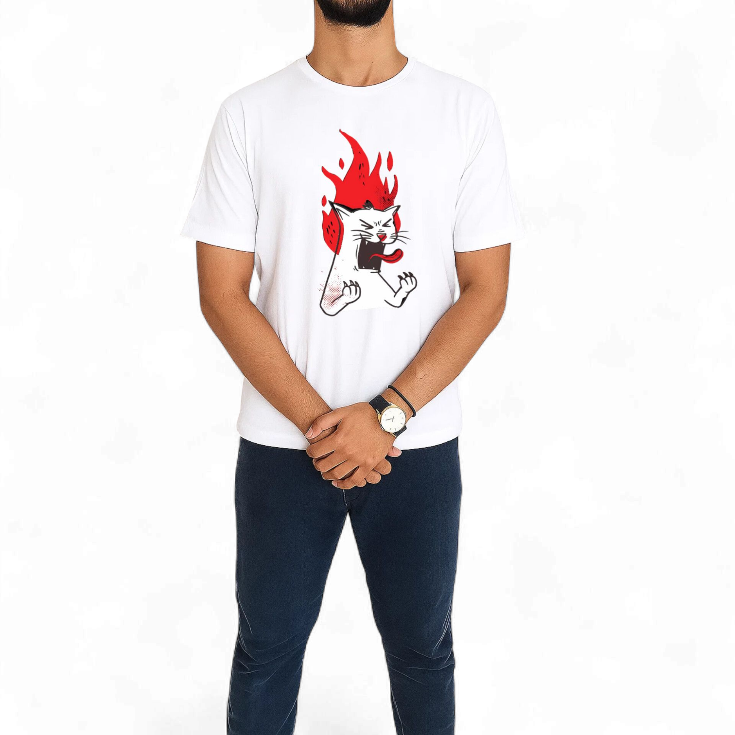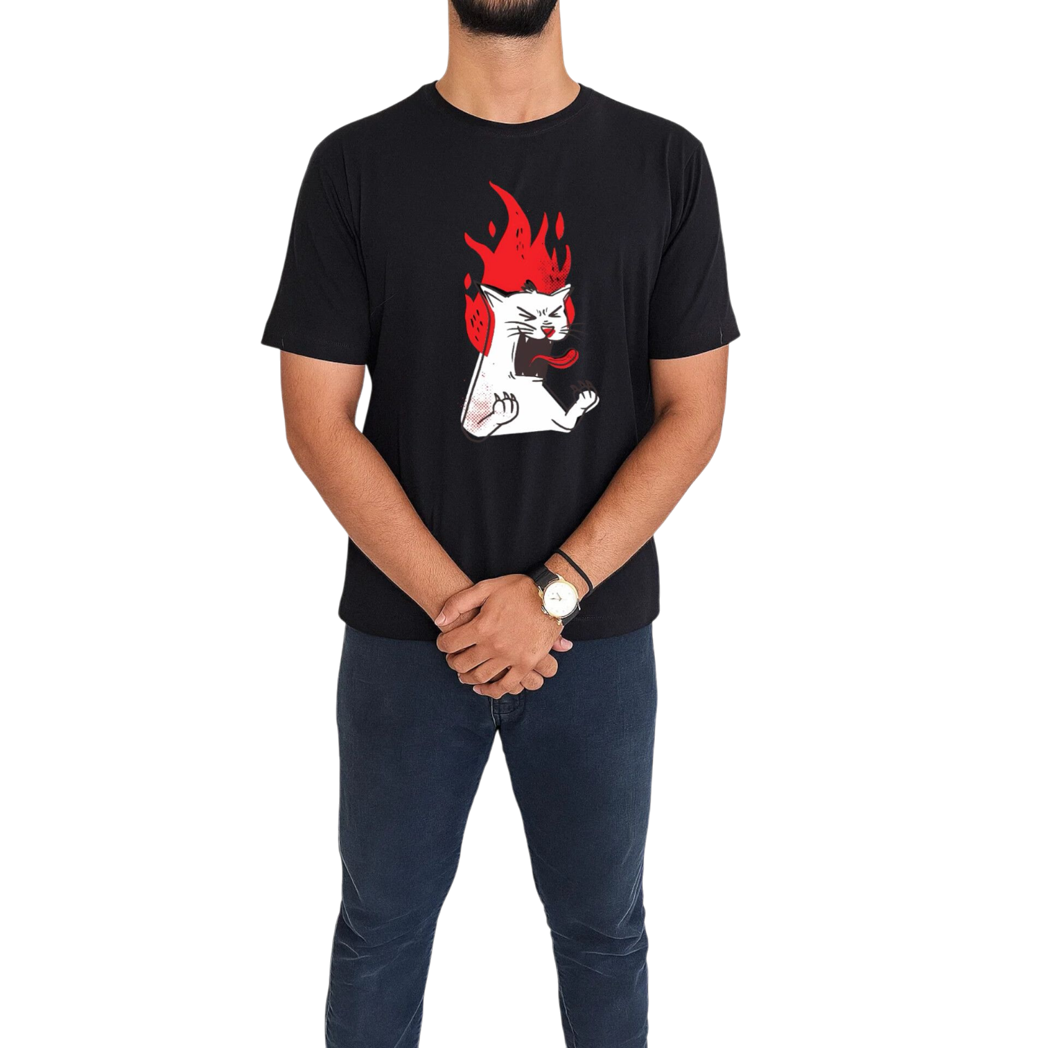 تیشرت نخی با چاپ دیجیتال طرح گربه آتیشی – انتخابی خاص برای استایل خاص شما